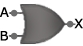 In onderstaand plaatje zie je schakeling met twee schakelaars en een lampje. Als de schakelaars in positie 0 staan, brandt de lamp niet. Als alleen schakelaar A aan wordt gezet, gaat het lampje branden. Ook als alleen schakelaar B aan wordt gezet gaat het lampje branden. Ook als beide schakelaars aan staan, brandt het lampje.
