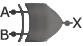 Deze schakeling wordt een XOR-poort genoemd. Een XOR-poort wordt weergegeven met het symbool: