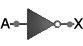 Kijk ook naar de getallen in de waarheidstabel. Deze schakeling wordt een NOT-poort of Inverter (keert de invoer om) genoemd. Een NOT-poort wordt weergegeven met het symbool: